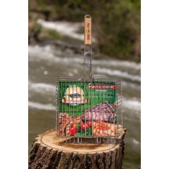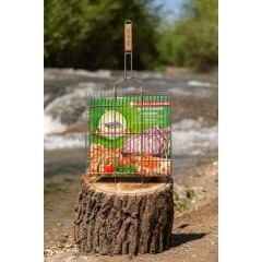 Большая решетка GrandPicnic 390×350 мм. Усиленные прутки (3 и 6 мм), рабочая поверхность 39×35 см, борта 6 см. Прочная и удобная решетка для шашлыка, рыбы и овощей.