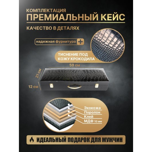 Каждый элемент набора продуман до мелочей и изготовлен из высококачественных материалов, что гарантирует долговечность и надёжность в использовании. Компактный футляр обеспечивает удобное хранение и транспортировку всех предметов.