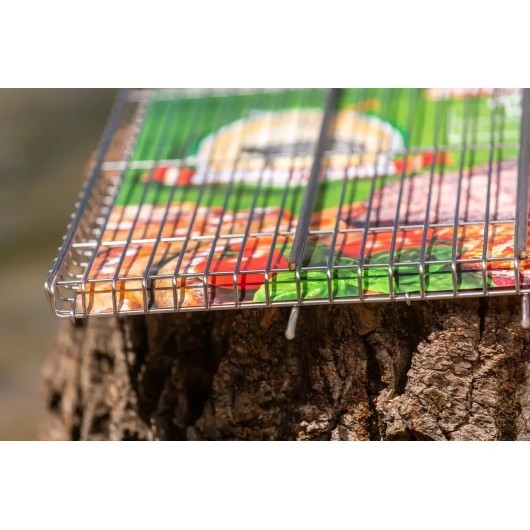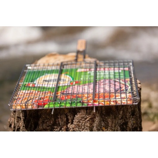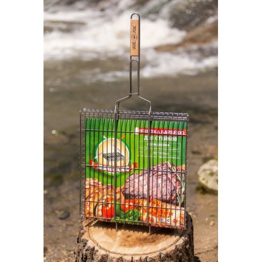 Профессиональная решетка барбекю (барбекюшница) для гриля из пищевой нержавеющей стали толщиной прутков 3 мм, толщина прутка ручки 6 мм, рабочая поверхность 46*46 см. Диаметр каркасного прута 6 мм. Вмещает достаточное количество мяса для большой компании. Ручка из дерева бук. Веер для мангала в комплекте в подарок. Решетка износостойкая, прочная, долговечная и довольно тяжелая - вес 2,56 кг. Для крепких телом и духом людей! Прослужит долго!