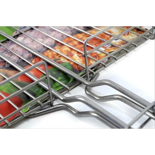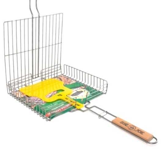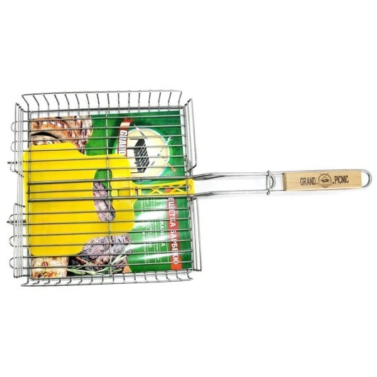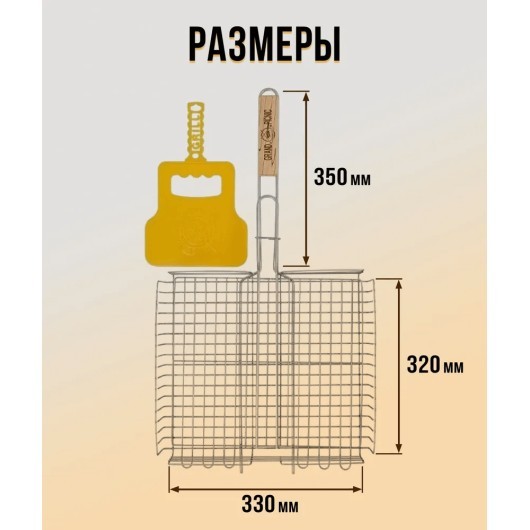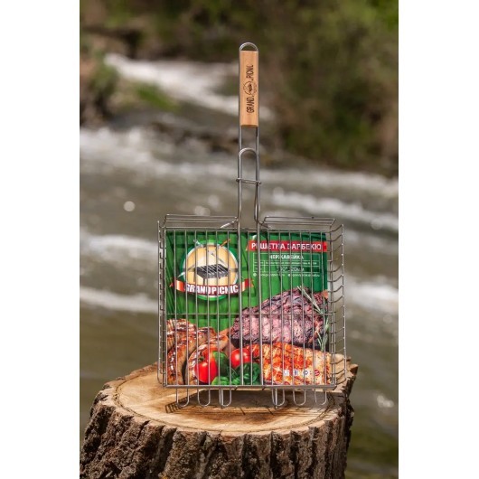 Профессиональная решетка для гриля на мангал (барбекюшница) из пищевой нержавеющей стали. Не магнитится. Толщина прутков 3 мм, толщина прутка ручки 6 мм, рабочая поверхность 33*32 см. Надежная, долговечная. Диаметр каркасного прута 6 мм. Вмещает до 2,5 кг мяса. Высокие борты - 6 см. Имеет регулировку по высоте захвата. Ручка из дерева бук. Веер для мангала в комплекте в подарок. Решетка износостойкая, прочная, долговечная и довольно тяжелая - вес 2 кг. Для крепких телом и духом людей! Прослужит долго!