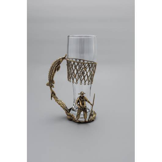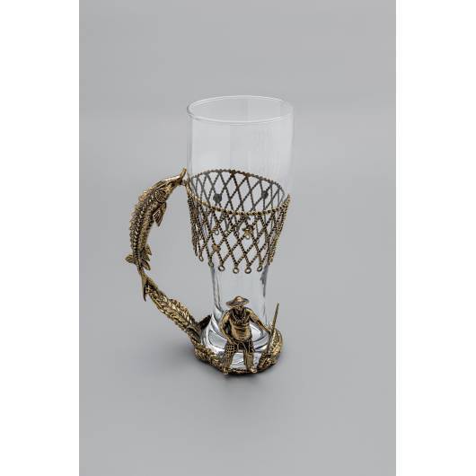 Пивной бокал «Осётр» – стильное сочетание прозрачного стекла и массивной бронзы. Ручка выполнена в виде детализированной фигуры осетра – символа богатства, благополучия и силы. Такой дизайн делает бокал не просто посудой, а настоящим произведением искусства.