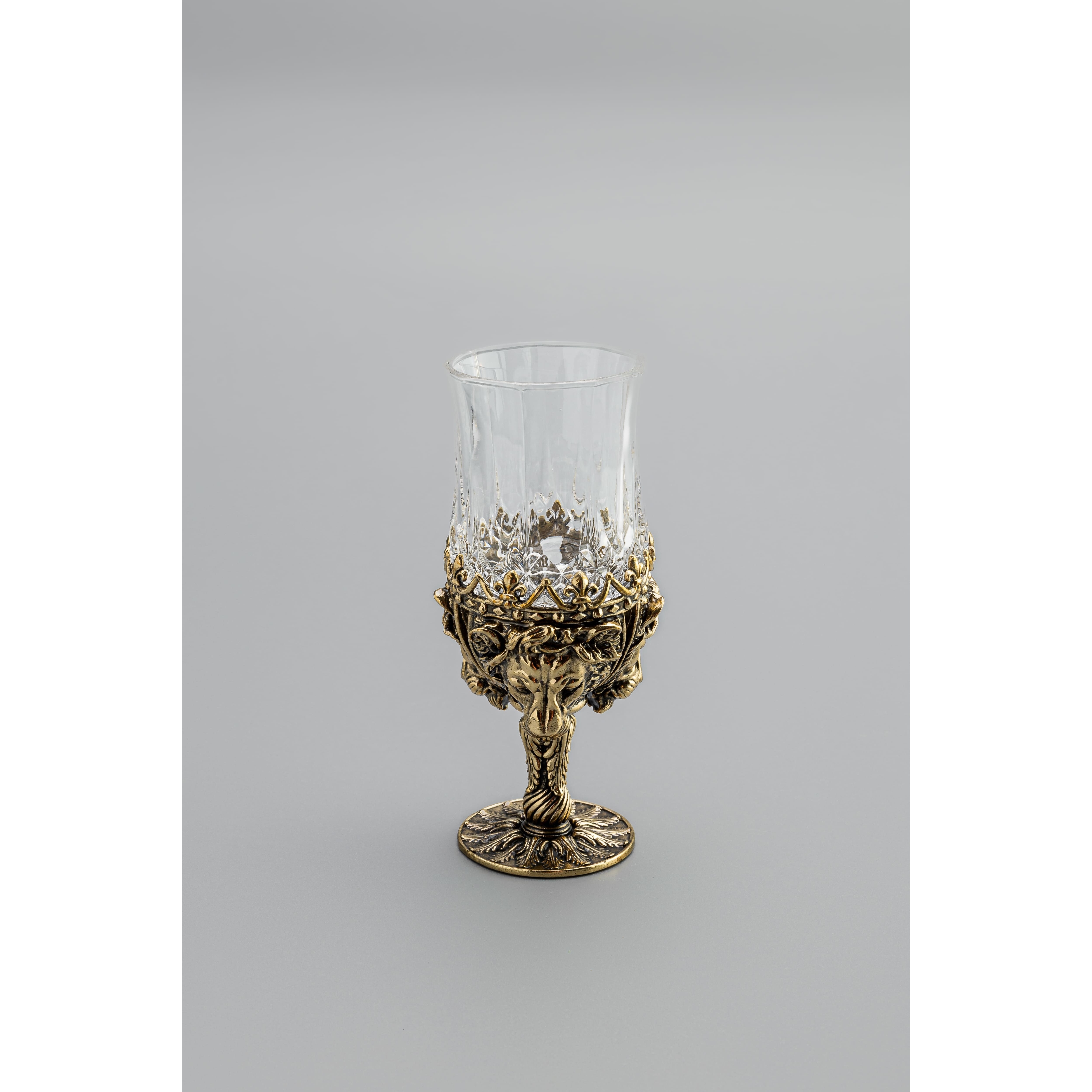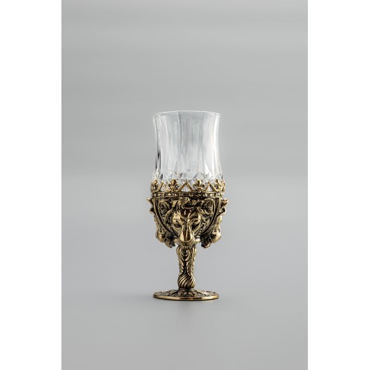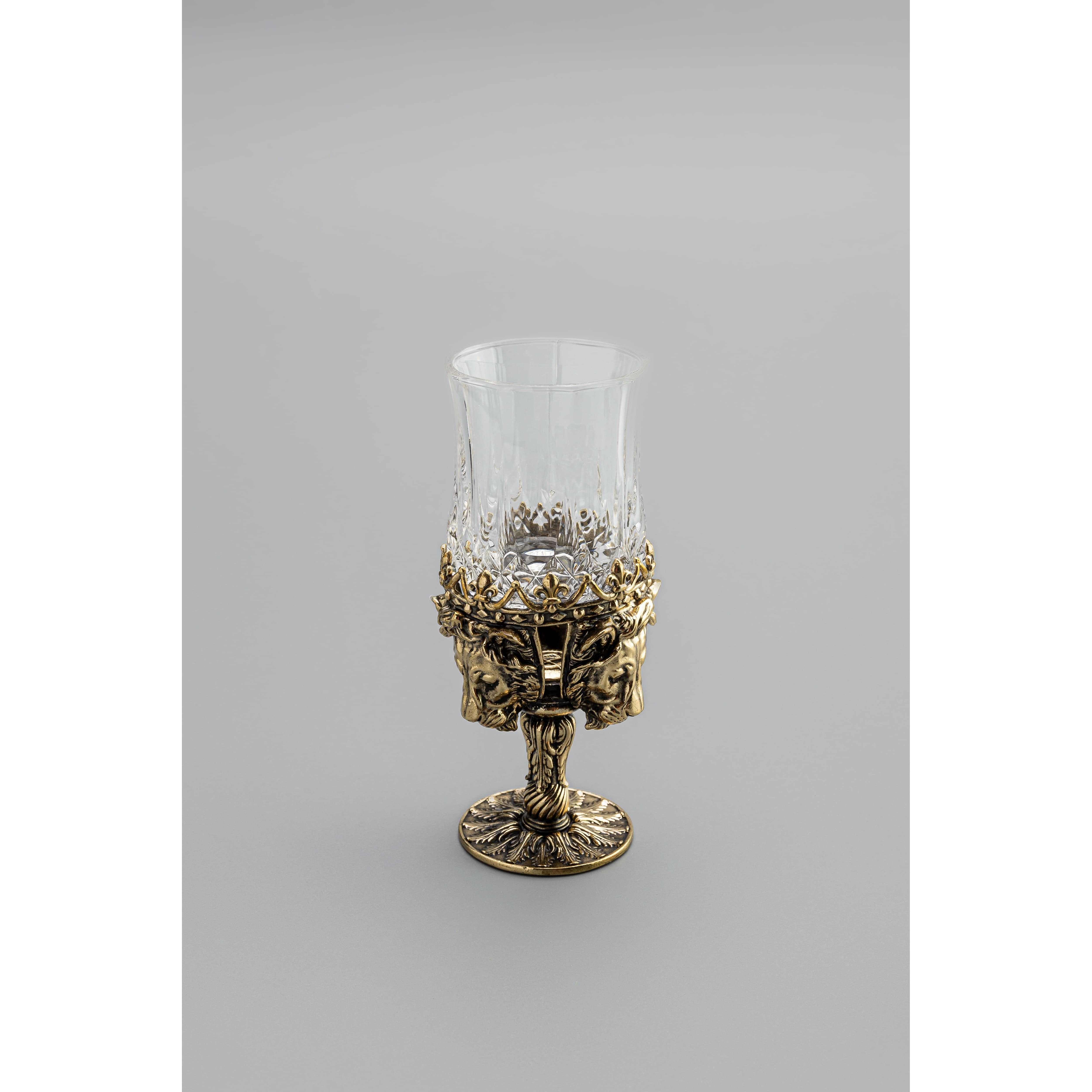Рюмка для водки «Лев» – сочетание благородного хрустального стекла и художественного бронзового литья. Основание украшено детализированной фигурой льва – символа силы, власти и уверенности. Такой аксессуар станет не только посудой, но и выразительным элементом сервировки.