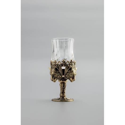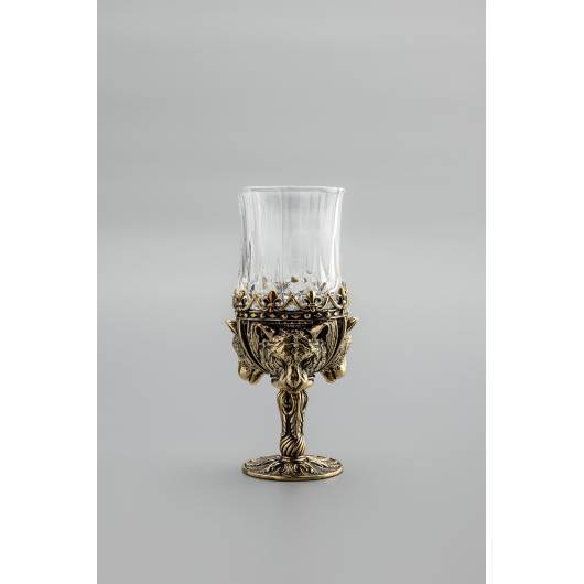 Рюмка для водки «Тигр» – гармоничное сочетание прозрачного хрустального стекла и изящного бронзового литья. Основание выполнено в виде фигуры тигра – символа силы, отваги и энергии. Такой аксессуар подчеркнёт характер владельца и станет изюминкой сервировки стола.