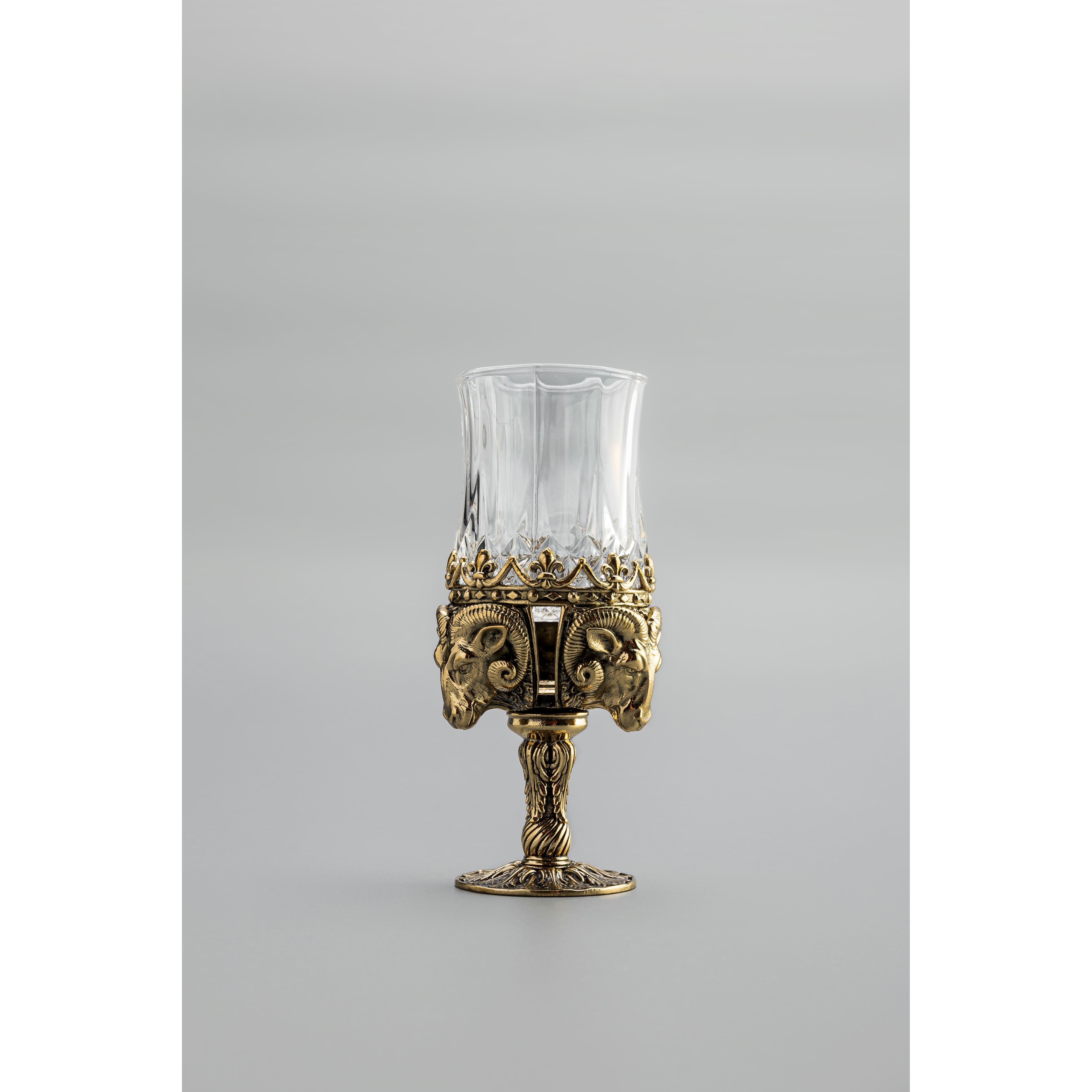 Рюмка для водки «Баран» – гармоничное сочетание прозрачного хрустального стекла и художественного бронзового основания. Основание украшено фигурой барана — символа силы, упорства и уверенности. Такой аксессуар станет эффектным элементом сервировки и ценным подарком.