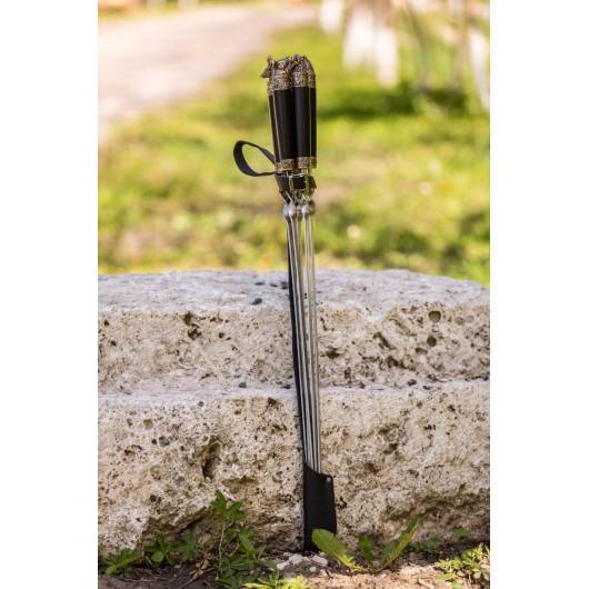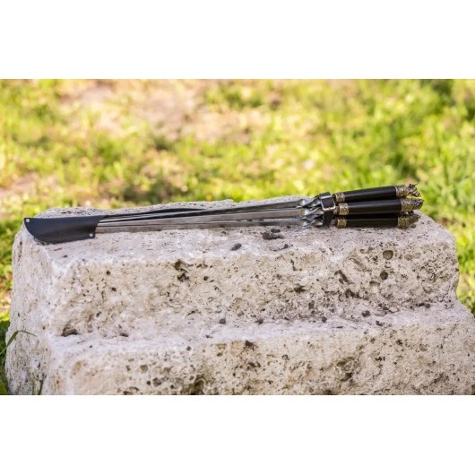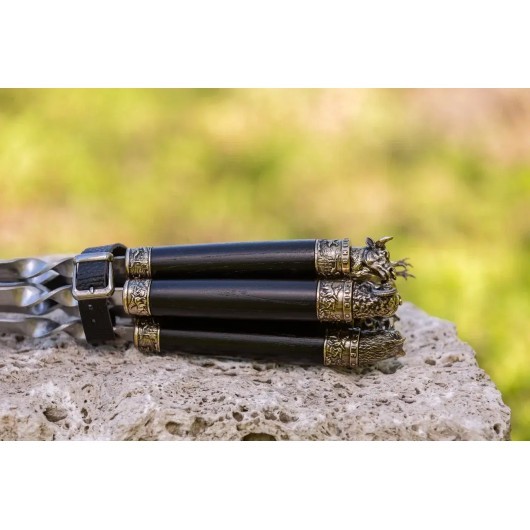 Каждый шампур украшен фигурной ручкой с мотивами лесных животных, что придаёт набору коллекционную ценность и делает его отличным подарком для мужчины, охотника или любителя пикников. Эргономичные ручки удобно лежат в руке, обеспечивая комфортное использование при приготовлении шашлыка.
