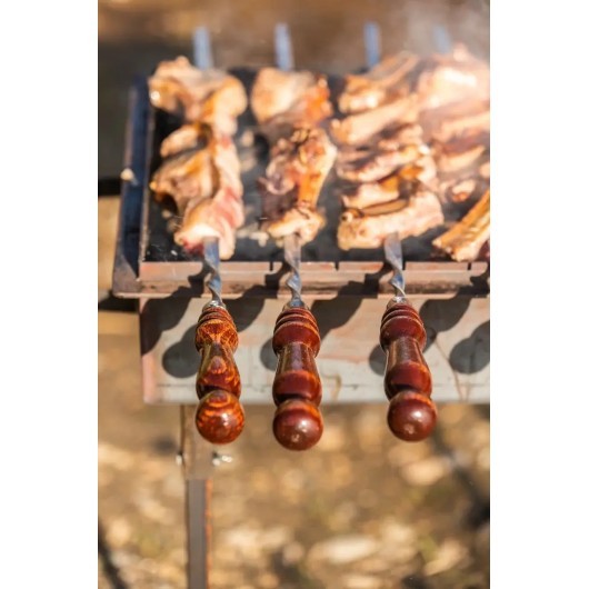Ручка изготовлена из натурального бука — плотной, термостойкой породы дерева, устойчивой к нагреву и влаге. Благодаря эргономичной форме шампур удобно держать в руке, а длина 65 см делает его универсальным для большинства мангалов.